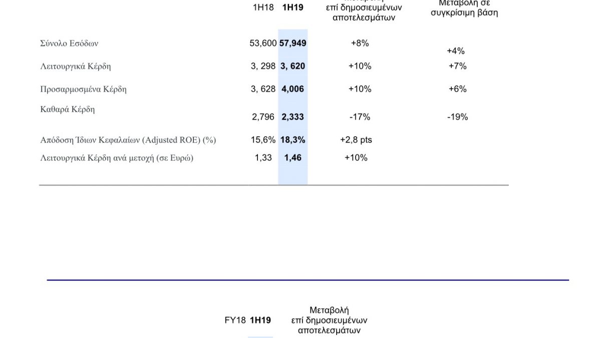 • Λειτουργικά κέρδη ανά μετοχή, αύξηση 10% στα 1,46 ευρώ