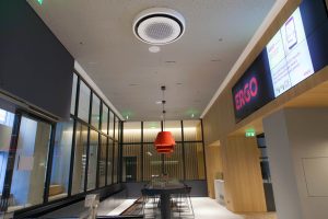 Στην ανακαίνιση του ισόγειου χώρου των 2 κτιρίων του συγκροτήματος της εταιρείας, στη Λ. Συγγρού, όπου δημιουργήθηκαν αίθουσες συνεδριάσεων, παρουσιάσεων και εκπαιδεύσεων, χώρος call center και χώρος εστιατορίου, η ABAS εγκατέστησε περισσότερες από 20 οθόνες Digital Signage, συνδεδεμένες μέσω του κορυφαίου συστήματος διανομής βίντεο και ήχου CRESTRON NVX AV over IP. Σε όλες τις αίθουσες παρουσιάσεων και συσκέψεων εγκαταστάθηκαν επαγγελματικά συστήματα τηλεδιάσκεψης, ενώ το ισόγειο καλύφθηκε με πολυζωνικό σύστημα διανομής μουσικής. Ο έλεγχος και η διαχείριση των παραπάνω συστημάτων πραγματοποιείται με αυτοματισμούς CRESTRON.