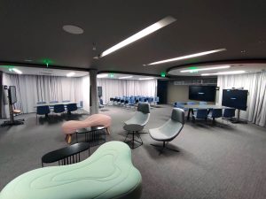 · Συστήματα Video Wall με χρήση επαγγελματικών 4Κ Digital Signage Monitors. Τοποθετήθηκαν επίσης, 3 portable Interactive touch screen displays. · Industry leading Σύστημα AV-Over-IP με συσκευές DigitalMedia NVX της CRESTRON USA, για μετάδοση digital audio και uncompressed video 4K60 HDR χωρίς latency σε όλες τις οθόνες της εγκατάστασης, με την μέγιστη ασφάλεια. · Enterprise Σύστημα Αυτοματισμού CRESTRON με χρήση ειδικών Automation και DSP controllers για έλεγχο και χειρισμό όλων των συστημάτων ήχου και εικόνας της εγκατάστασης. · Πολυζωνικό Σύστημα Διανομής Ήχου για αναπαραγωγή ήχου σε όλους τους χώρους με ανεξάρτητη ένταση και επιλογή προγράμματος. · Συστήματα Τηλεδιάσκεψης Video Conference CISCO WEBEX.