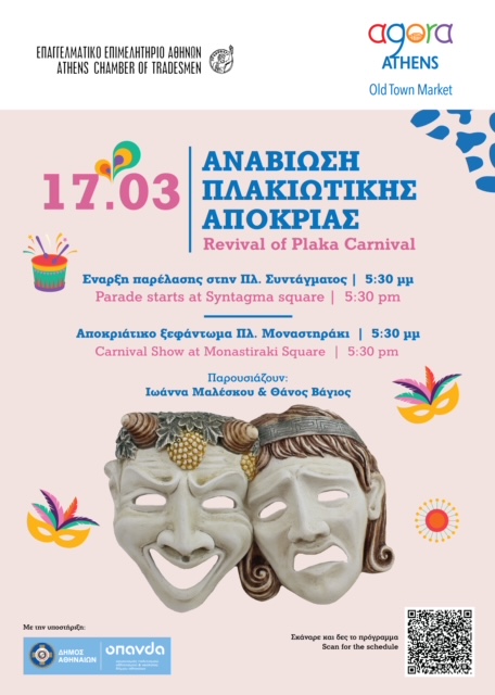 Αποκριάτικο ξεφάντωμα στην Πλάκα την Κυριακή 17/3.