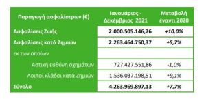 ΕΑΕΕ: Παραγωγή ασφαλίστρων Ιανουαρίου – Δεκεμβρίου 2021