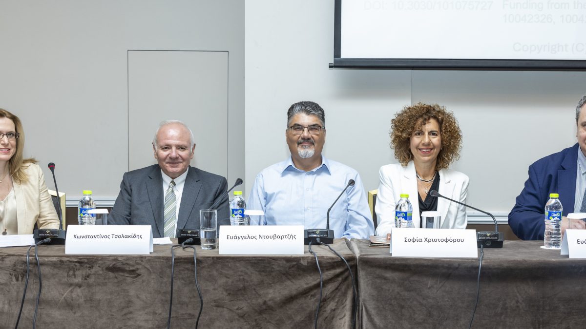 Στη συζήτηση πάνελ συμμετείχαν οι κκ. Eυάγγελος Δρυμπέτας| Καθηγητής Τμήματος Οικονομικών Επιστημών, Μέλος Συμβουλίου Διοίκησης Δημοκρίτειου Πανεπιστημίου Θράκης, Μέλος Δ.Σ. Interlife, Σοφία Χριστοφόρου |Προϊσταμένη Σώματος Επιθεώρησης Βορείου Ελλάδος, Υπουργείο Περιβάλλοντος & Ενέργειας, Ευάγγελος Ντουβαρτζής | Χημικός Μηχανικός MSc, Διευθυντής Εργοστασίου ISOMAT ABEE, Κωνσταντίνος Τσολακίδης| Senior Underwriter – Environmental Liability & Renewable Energy, Ιντεραμέρικαν Ελληνική Ασφαλιστική Α.Ε. Συντόνισε η κυρία Μ. Φαράντου.