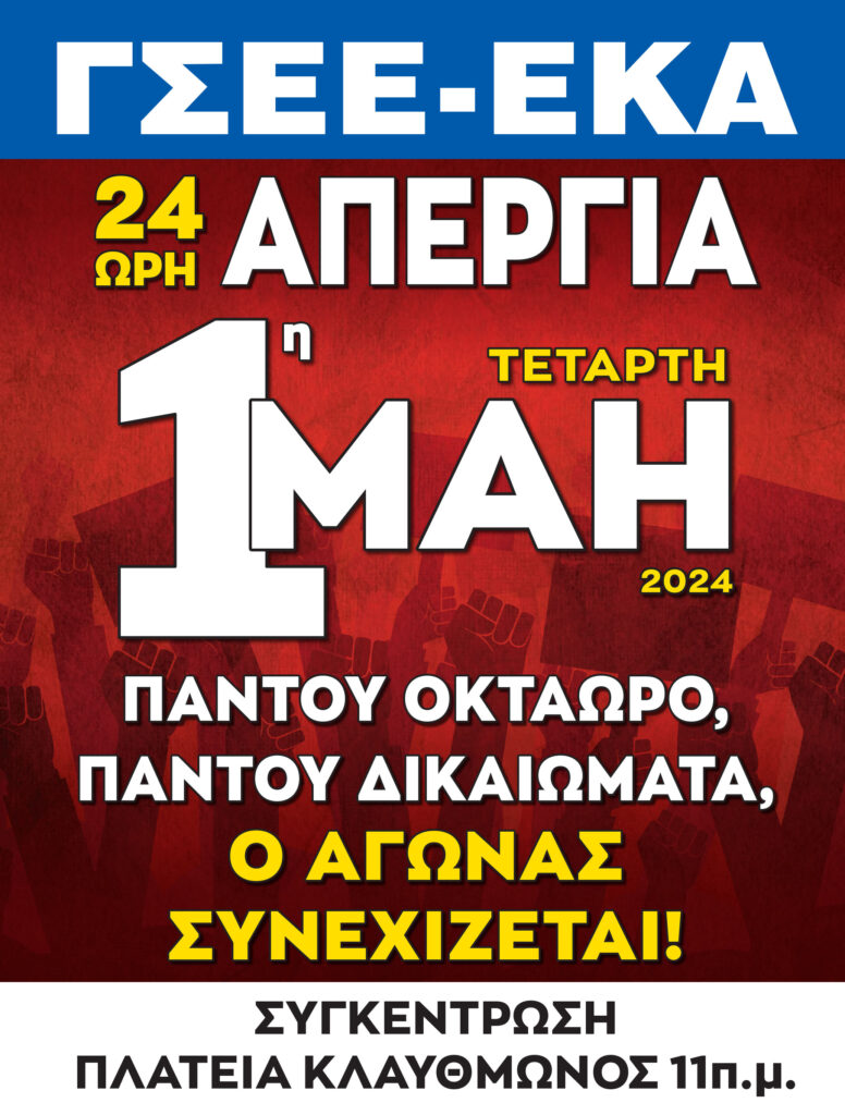 ΓΣΕΕ – ΟΑΣΕ : 24ωρη Απεργία – ΤΕΤΑΡΤΗ 1η ΜΑΗ ΕΡΓΑΤΙΚΗ ΠΡΩΤΟΜΑΓΙΑ