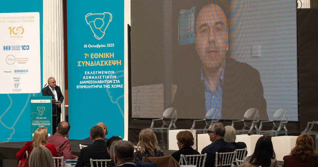 Μεγάλη επιτυχία σημείωσε η 7η Εθνική Συνδιάσκεψη Ασφαλιστικών Διαμεσολαβητών εκλεγμένων στα Επιμελητήρια, η οποία διεξήχθη στον εμβληματικό χώρο του Ζαππείου, το Σάββατο, 18 Οκτωβρίου 2025.