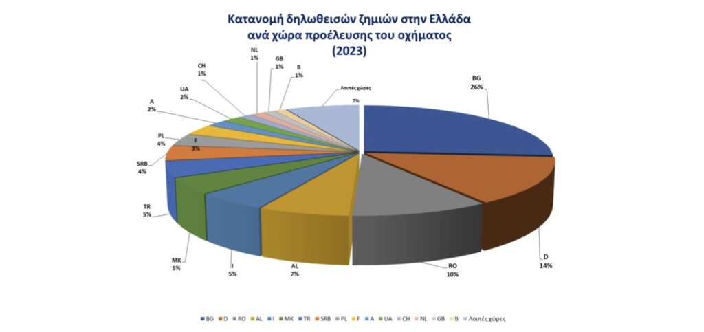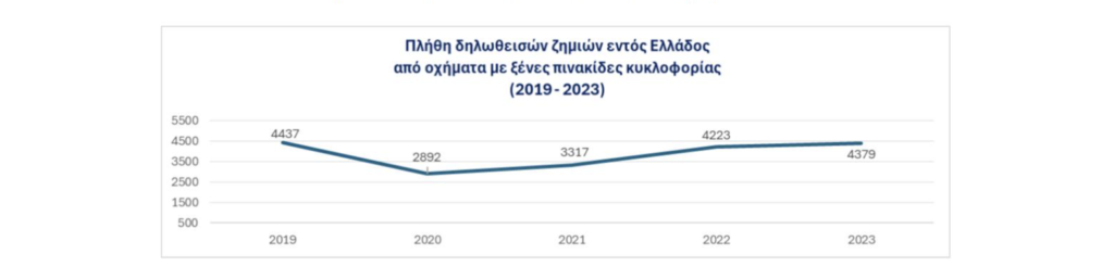 Αυξητικά κινήθηκαν τα ατυχήματα από αυτοκίνητα με ξένες πινακίδες κυκλοφορίας στην Ελλάδα το 2023 πλησιάζοντας τα επίπεδα των ετών πριν την πανδημία του Covid-19.