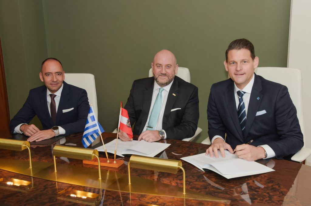 Αριστερά προς δεξιά Ante Banovac, COO GrECo International Holding AG Risk Consultants and Insurance Brokers Markus Neubrand, Head of Mergers & Acquisition GrECo International Holding AG Risk Consultants and Insurance Brokers Louisa Kalogerakou, Partner & Director EB Team Comergon SA | Risk Managers Insurance Brokers George Zafiriou, Partner & CEO Comergon SA | Risk Managers Insurance Brokers Georg Winter, CEO GrECo International Holding AG Risk Consultants and Insurance Brokers