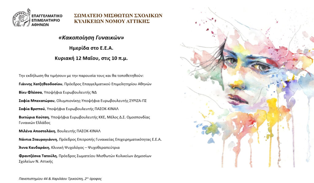 «Κακοποίηση Γυναικών»: Εκδήλωση κοινωνικής ευαισθητοποίησης την Κυριακή 12 Μαΐου στο Ε.Ε.Α.