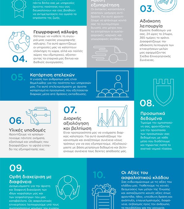 Ο Κώδικας Δεοντολογίας αποτελεί ένα σύνολο κανόνων ο οποίος θα λειτουργήσει ως ένας πρακτικός οδηγός για όλες τις δράσεις και τις ενέργειες των εταιρειών οδικής βοήθειας μελών της ΕΑΕΕ, από τις πιο απλές και καθημερινές, ως τις πιο σημαντικές και σύνθετες.