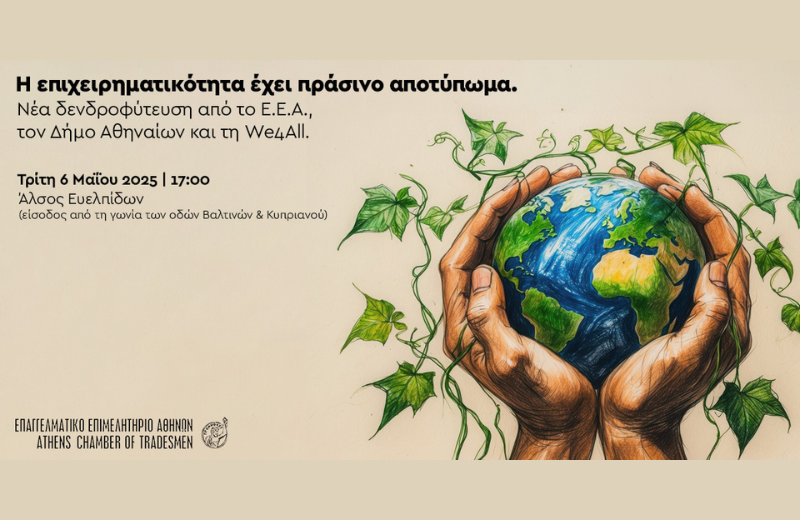 Το Επαγγελματικό Επιμελητήριο Αθηνών συνεχίζει δυναμικά το μεγάλο πρόγραμμα δενδροφυτεύσεων στην Αττική. Την Τρίτη 6 Μαΐου 2025, στις 17:00, σας προσκαλούμε στο Άλσος Ευελπίδων, σε μια […]