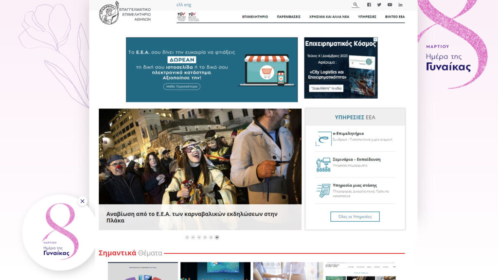 Το Επαγγελματικό Επιμελητήριο Αθηνών τιμά την Ημέρα της Γυναίκας με δύο δράσεις υψηλού συμβολισμού. Στις 8 Μαρτίου και για 24 ώρες η εικόνα του site eea.gr […]