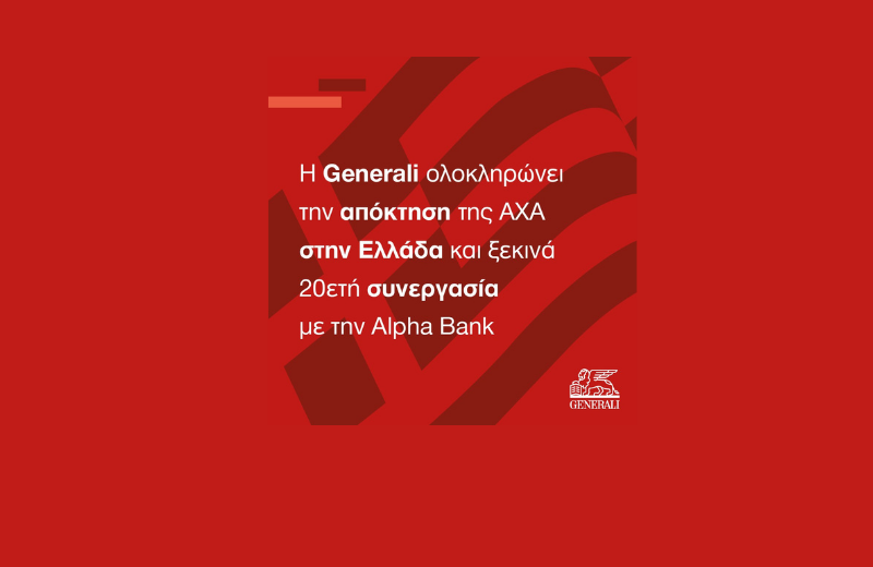 H Generali ολοκληρώνει την εξαγορά της AXA Ασφαλιστική Α.Ε. στην Ελλάδα και ξεκινά 20ετή αποκλειστική συνεργασία με την Alpha Bank