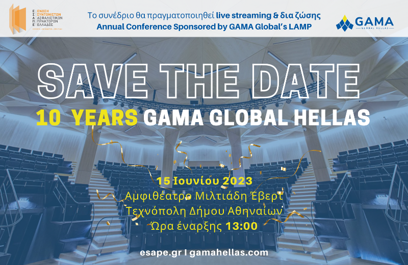 Το εκπαιδευτικό συνέδριο ΕΣΑΠΕ-GAMA Global Hellas “10 YEARS GAMA Global Hellas” θα πραγματοποιηθεί στις 15/6/2023, στο ΑΜΦΙΘΕΑΤΡΟ ΜΙΛΤΙΑΔΗ ΕΒΕΡΤ-ΤΕΧΝΟΠΟΛΗ ΔΗΜΟΥ ΑΘΗΝΑΙΩΝ *Θα υπάρχει δυνατότητα για live streaming