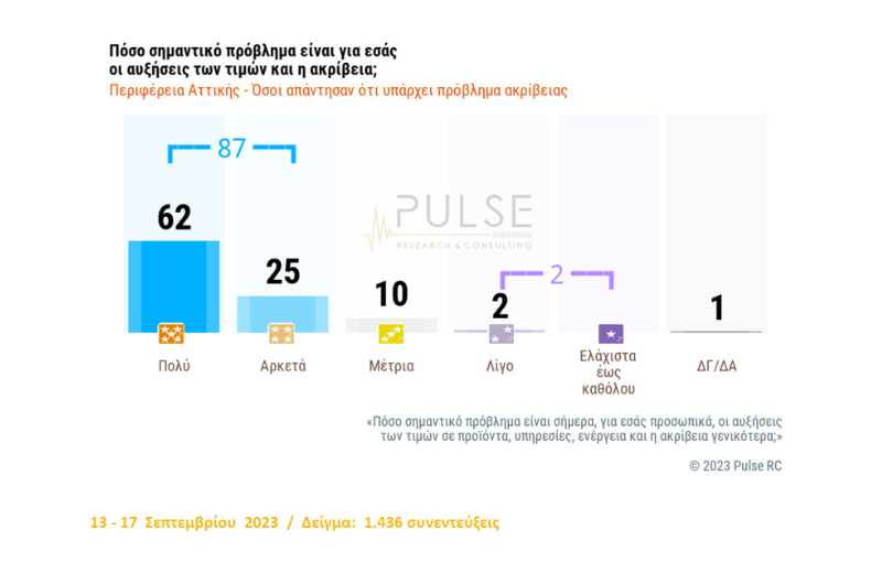 Νέα μεγάλη έρευνα Ε.Ε.Α. – Pulse: To 87% θεωρεί την ακρίβεια «πολύ» ή «αρκετά» σημαντικό πρόβλημα