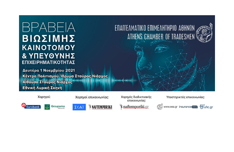 Απονομή των βραβείων «Βιώσιμης -Καινοτόμου & Υπεύθυνης Επιχειρηματικότητας του Ε.Ε.Α. την 1η Νοεμβρίου παρουσία της Προέδρου της Δημοκρατίας